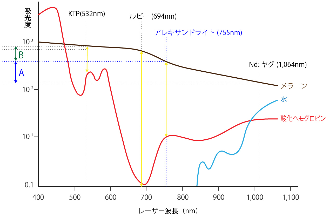 この条件を最もバランスよく満たすのが、アレキサンドライト波長(755nm)です。